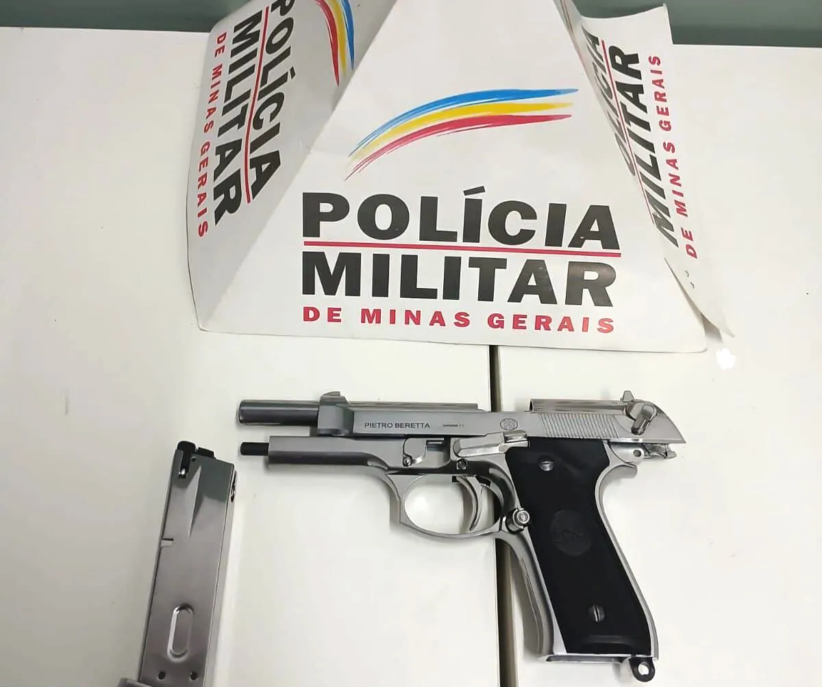 Com base nas informações repassadas, os policiais iniciaram buscas e localizaram o veículo do autor. Durante a abordagem, os militares encontraram um simulacro de arma de fogo, com as mesmas características da imagem enviada à vítima.
