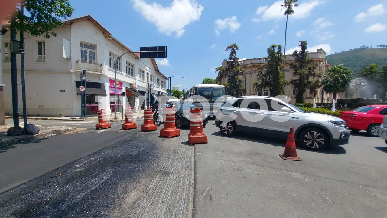 Asfaltamento é retomado no centro e causa lentidão no trânsito