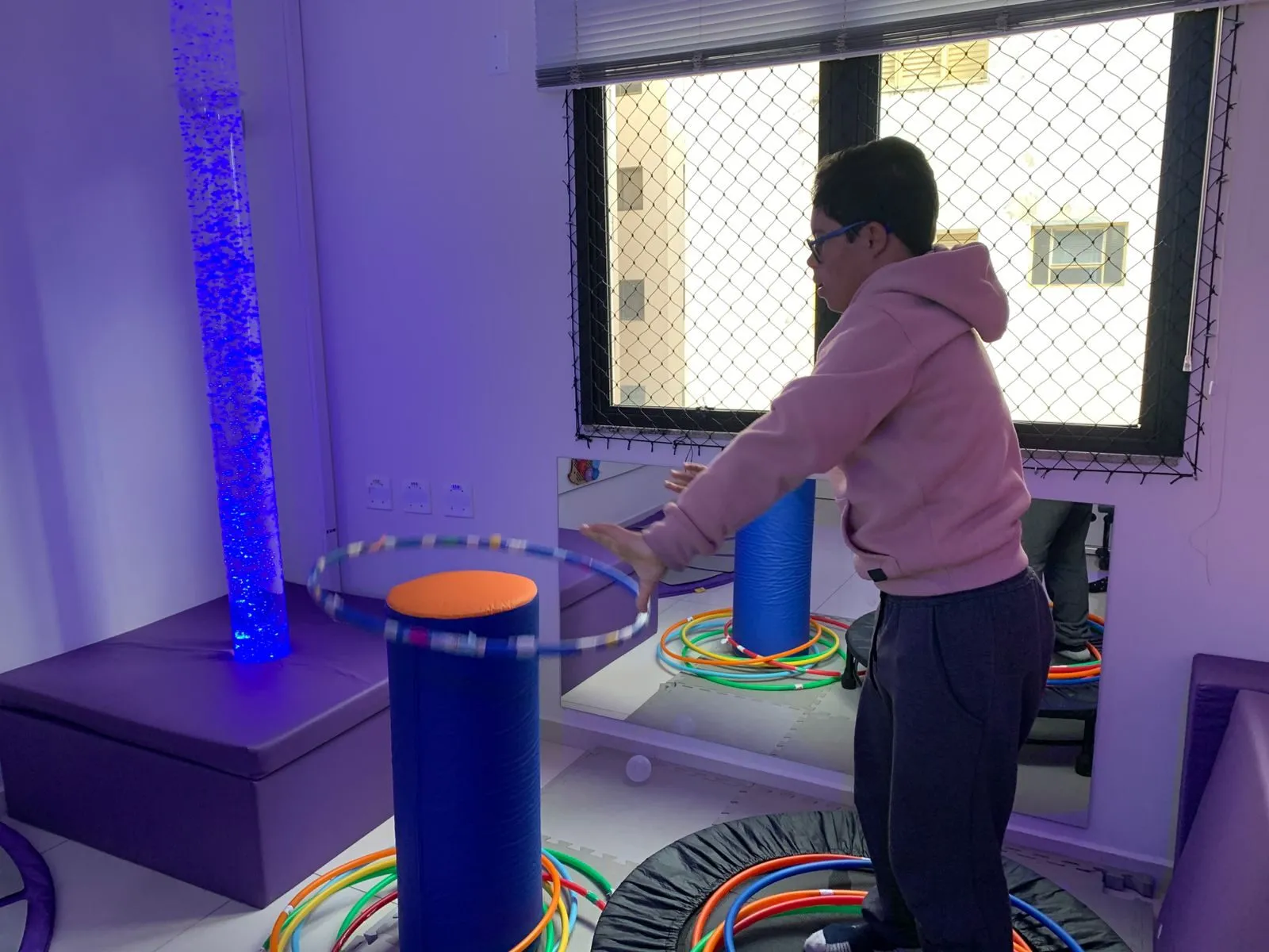 Segunda ela, um dos diferenciais da Associação é a sala Neurobrinq, única em Poços de Caldas, equipada com recursos tecnológicos que promovem estimulação e ganhos de desenvolvimento até quatro vezes mais rápidos que as terapias convencionais.