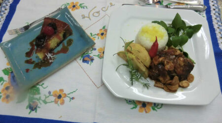 Bisteca de porco com conhaque & Bolo de cenoura com castanha do Pará