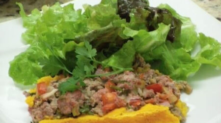 Refogue alho, cebola e todos os legumes em azeite de oliva, espere esfriar, misture os ovos, a carne, asse em forma de bolo inglês até dourar e sirva acompanhado da sua salada preferida tudo regado com azeite de oliva.