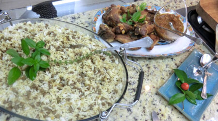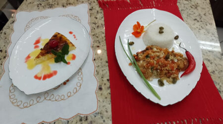 BOLO DE CARNE COM LEGUMES & FOLHADOS COM AMEIXA EM CALDA