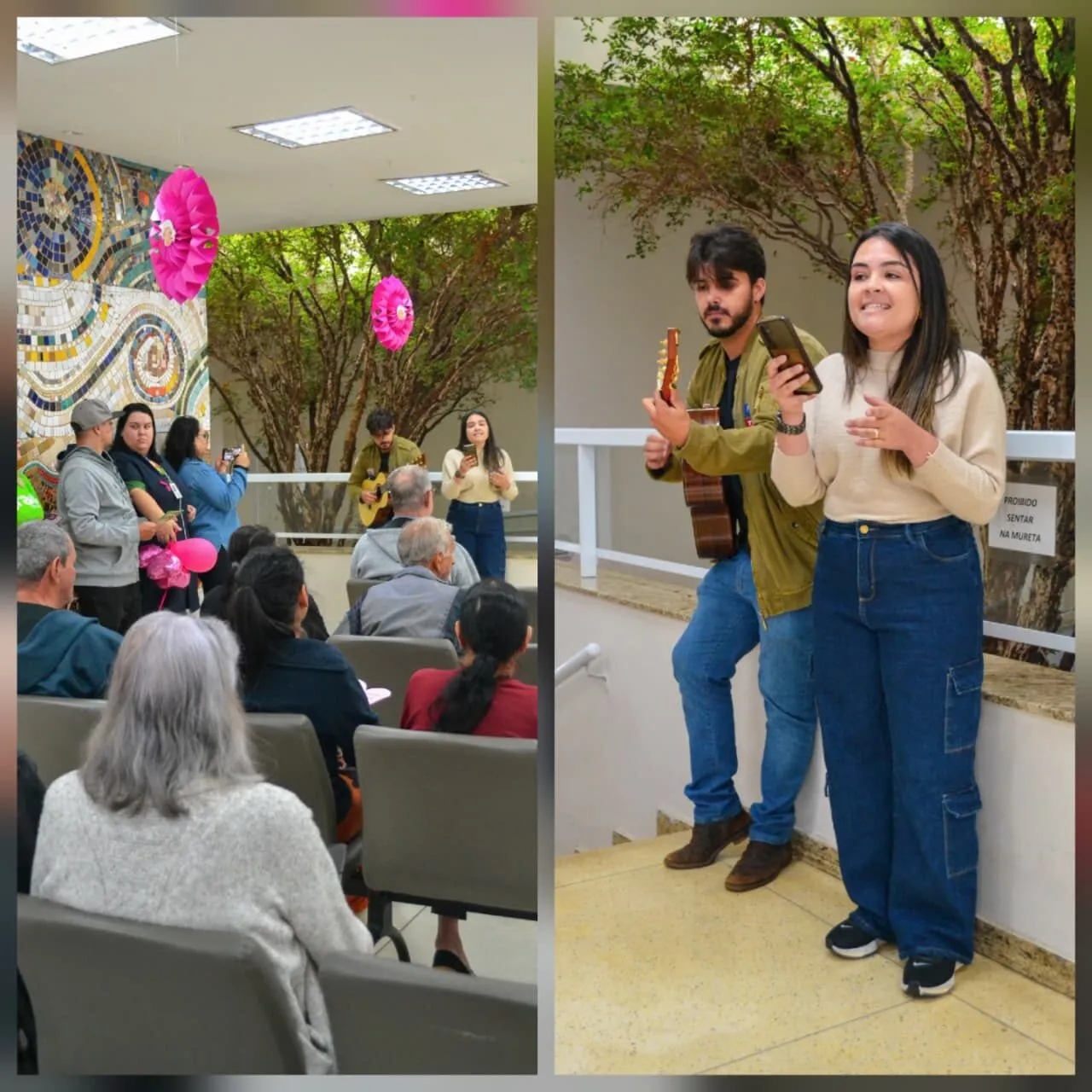 A programação incluiu ainda uma apresentação musical dos alunos Matheus e Jaqueline, que interpretaram canções para os pacientes, reforçando o ambiente de acolhimento e solidariedade.