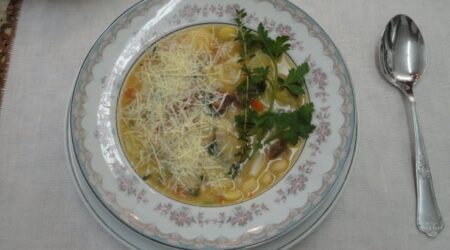 Caldo de abóbora com capeletti de frango
