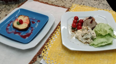 Caldo de couve com bolas de batata e bacon & Bolo de laranja com castanha de caju