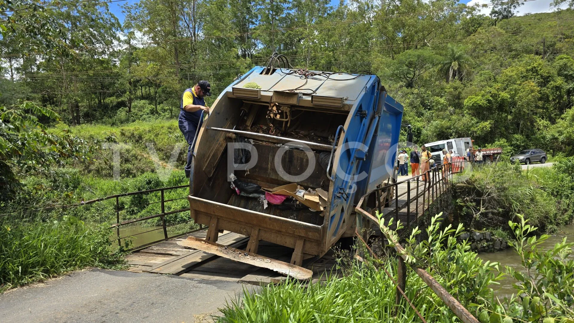 Caminhão da coleta afunda em ponte e Prefeitura anuncia restauração total