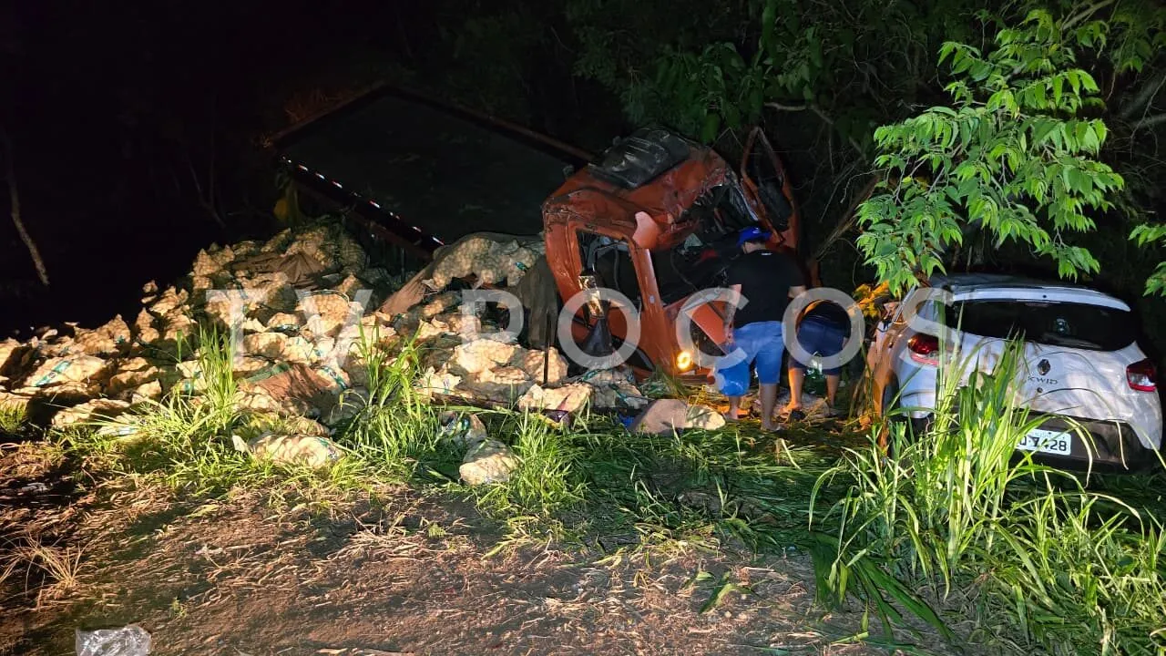 Um acidente envolvendo um caminhão carregado com batatas e um Renault Kwid mobilizou equipes de resgate no início da noite desta sexta-feira, 5 de dezembro, na BR-459, no trecho entre Poços de Caldas e Caldas.