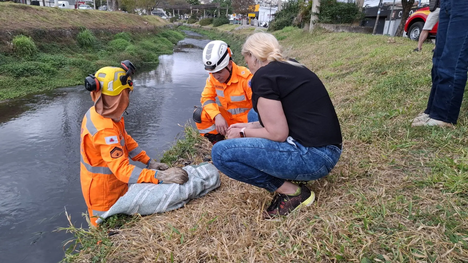 Duas turistas que passavam pelo local presenciaram a cena e desceram até o ribeirão na tentativa de resgatar o cão, permanecendo ao lado dele até a chegada dos bombeiros. A guarnição realizou o resgate e prestou os primeiros cuidados ao animal, que foi seco, limpo e aquecido com um cobertor.