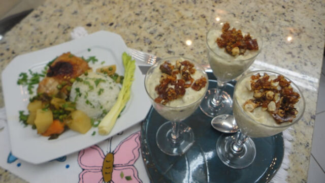 SOBRECOXA COM LEGUMES & CREME DE AMENDOIM INGREDIENTES DO FRANGO 4 sobrecoxas de frango com pele e tudo 4 batatas grandes picadas grosseiramente 4 cenouras picadas grosseiramente 2 cebolas picadas 2 xícaras de chá de salsão picado 2 colheres de sopa de grãos de mostarda 1 colher de sopa de páprica picante 1 xícara de chá de ervilhas congeladas 1...