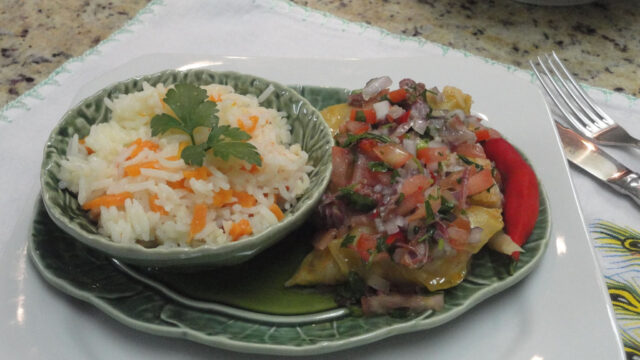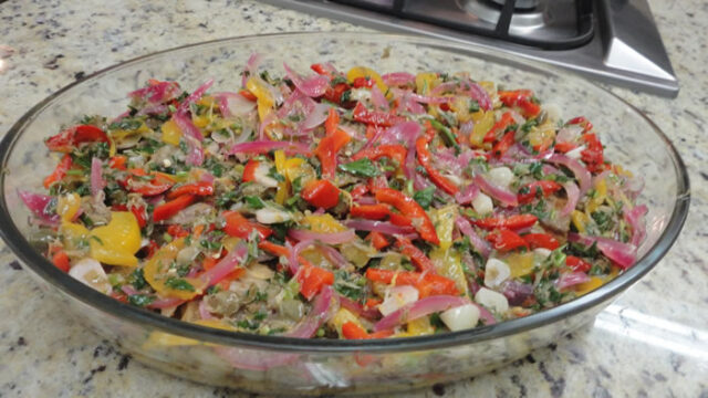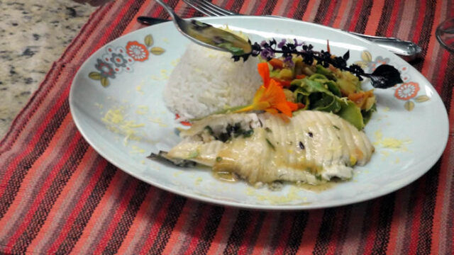 INGREDIENTES 4 filés de tilápia ou outro peixe de sua preferência 1 limão cravo 1 limões siciliano ½ xícara de chá de azeite de oliva 1 colher de sopa de mel de abelha 1 colher de chá de molho mostarda 1 xícara de chá de bacon picado 6 abobrinhas italianas tamanho médio laminadas 5 dentes de alho picados ½ cebola...