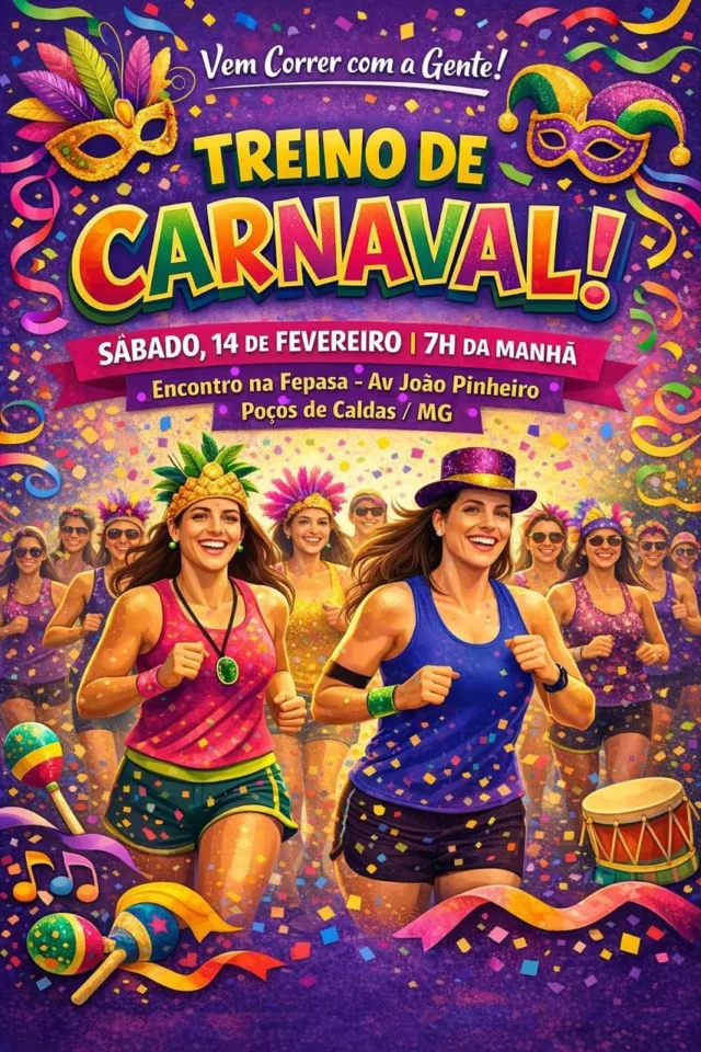 Corredores e caminhantes de Poços vão entrar no clima festivo e esportivo neste Carnaval. Um grupo de praticantes organiza um “Treinão de Carnaval”, que deve reunir participantes fantasiados em um momento de integração, saúde e lazer. A iniciativa surgiu após uma conversa entre a corredora Mariana Payoletti e a amiga Lara,...