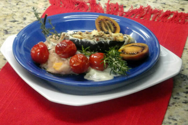 INGREDIENTES 1 kg. de filé de tilápia ou outro de sua preferência 1 cebola grande em lâminas Farinha de trigo para empanar Sal e limão a gosto INGREDIENTES do molho 1 sachê de purê de tomate (340gr.) 1 vidro de leite de coco (200ml.) 1 copo de requeijão cremoso (200ml.) 40 gr. de essência de peixe em...