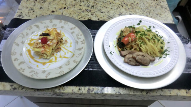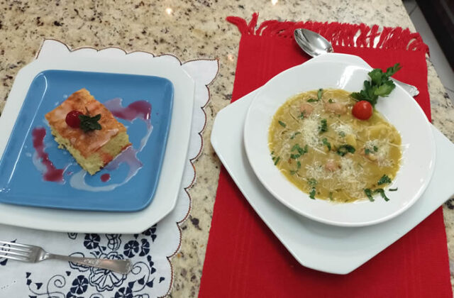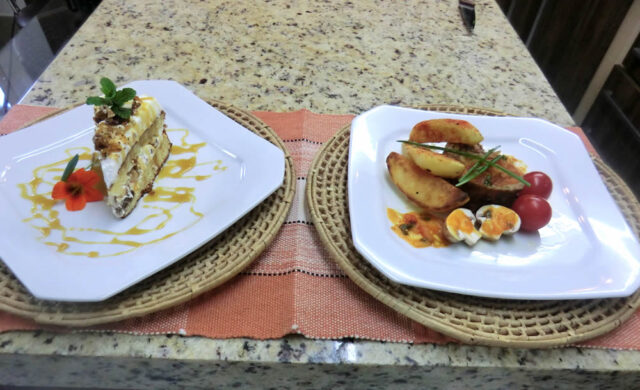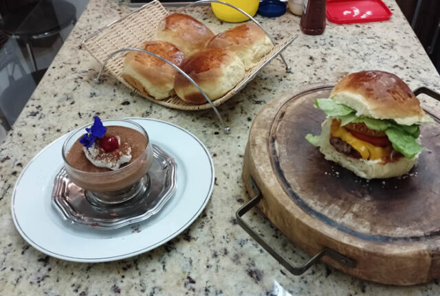 Pão de cebola e alho & Mousse de chocolate com macadâmia