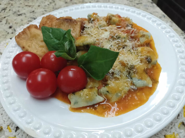 INGREDIENTES DO PÃO ½ litro de leite 3 ovos 50g de fermento biológico seco 1/3 de xícara de óleo 1/3 de xícara de azeite de oliva 2 xícaras de chá de cebola picada ¼ de xícara de alho picado ¼ de xícara de açúcar refinado 1,2 kg de farinha de trigo (aproximado) Sal a gosto PREPARO Refogue a cebola em óleo e...