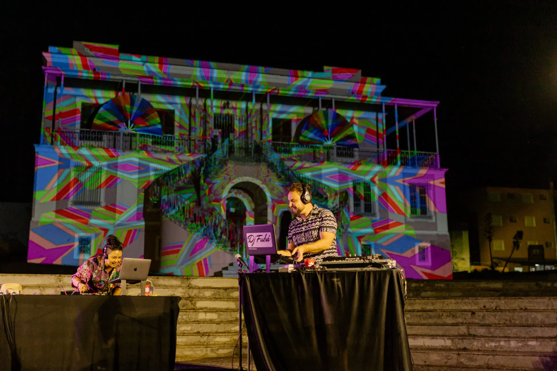 Entre os destaques desta edição, estão as projeções mapeadas — um grande diferencial da MIA, único evento a realizar mappings em Poços de Caldas. A VJ Letícia Pantoja (Rio de Janeiro/RJ) apresenta a obra “Coragem”, além de realizar uma performance de live VJ ao lado do VJ Bah (Belo Horizonte/MG), que também é coordenador técnico da Mostra. Juntos, eles transformam a Praça do Museu Histórico e Geográfico em um espetáculo de luz, cor e movimento, redesenhando a paisagem urbana com criação digital.