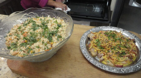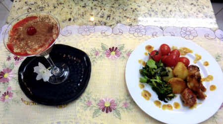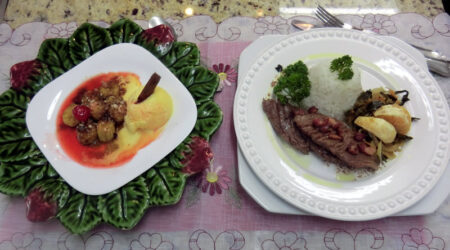 Compota de peras em calda de laranja e Fetuccine com champignon