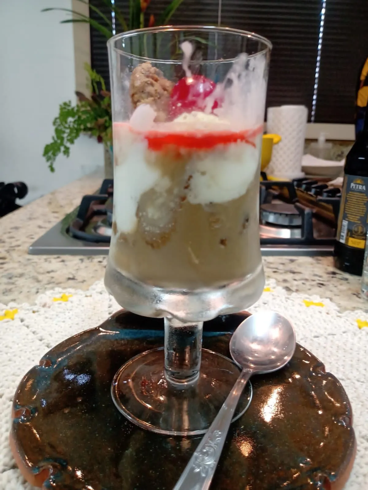 - Finalize com creme de leite, decorando com cereja e calda de café.