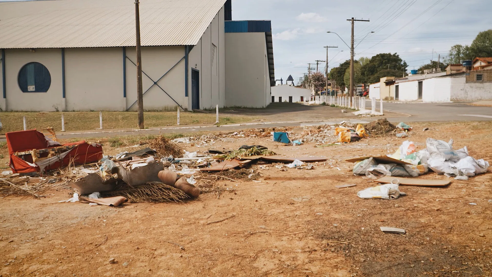 No local se encontra resíduos de material de construção, objetos de veículos e móveis descartados de forma inadequada. Segundo moradores, a ação humana é o principal fator, mas também há falhas na fiscalização e manutenção da área pública.