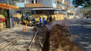 A previsão é que os trabalhos sejam concluídos em até 20 dias. Estão sendo instalados novos tubos de PVC de 100 mm no lugar das antigas redes de fibrocimento, que apresentam desgaste e vazamentos. A troca inclui ainda a instalação de novos ramais.