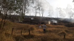 O Corpo de Bombeiros foi acionado na tarde deste domingo (20) para combater um incêndio de grandes proporções em uma área de mata no bairro Jardim Itamaraty V, na zona leste de Poços de Caldas.