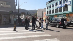 Motociclista fica ferida após ser atingida por carro no centro de Poços