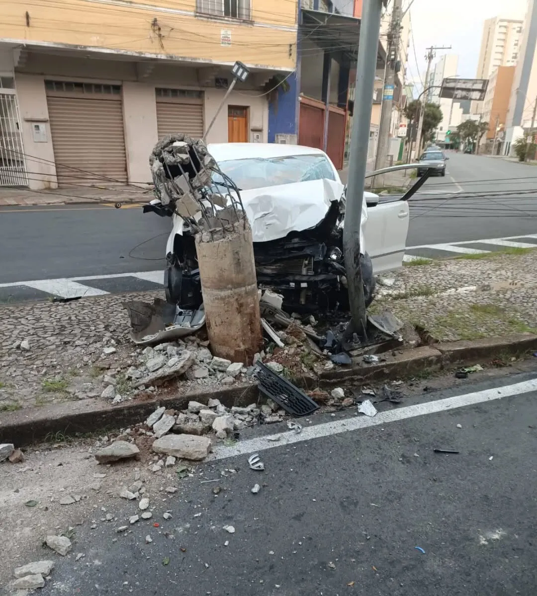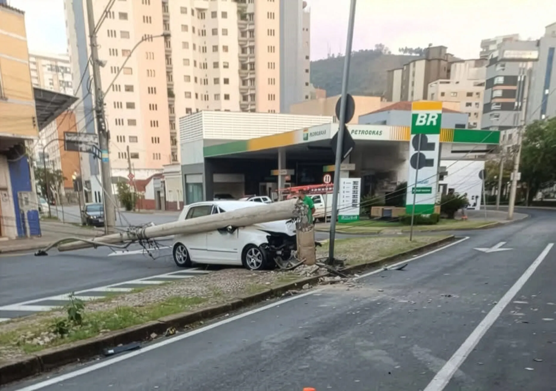 Um acidente registrado na madrugada deste sábado, 22 de novembro, mobilizou equipes da Polícia Militar e do Corpo de Bombeiros na Rua XV de Novembro, no bairro Cascatinha, em Poços de Caldas. Segundo informações da PM, um automóvel colidiu violentamente contra um poste de iluminação pública, provocando danos estruturais e o rompimento de fiação.