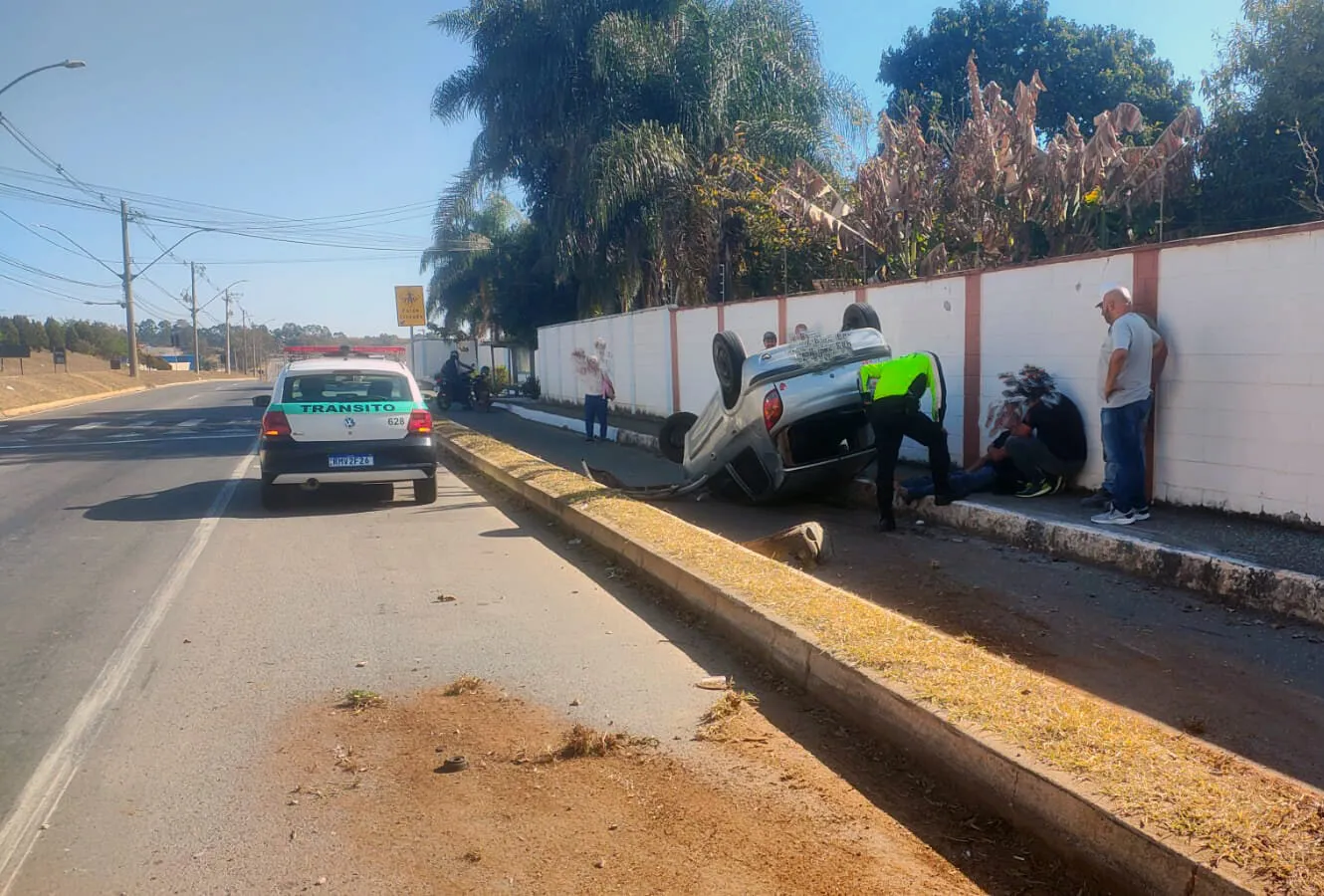 Na tarde desta segunda-feira (18), um carro capotou na Avenida Alcoa, na zona sul de Poços de Caldas. O veículo atingiu o canteiro central e parou sobre a ciclovia, chamando a atenção de quem passava pelo local.