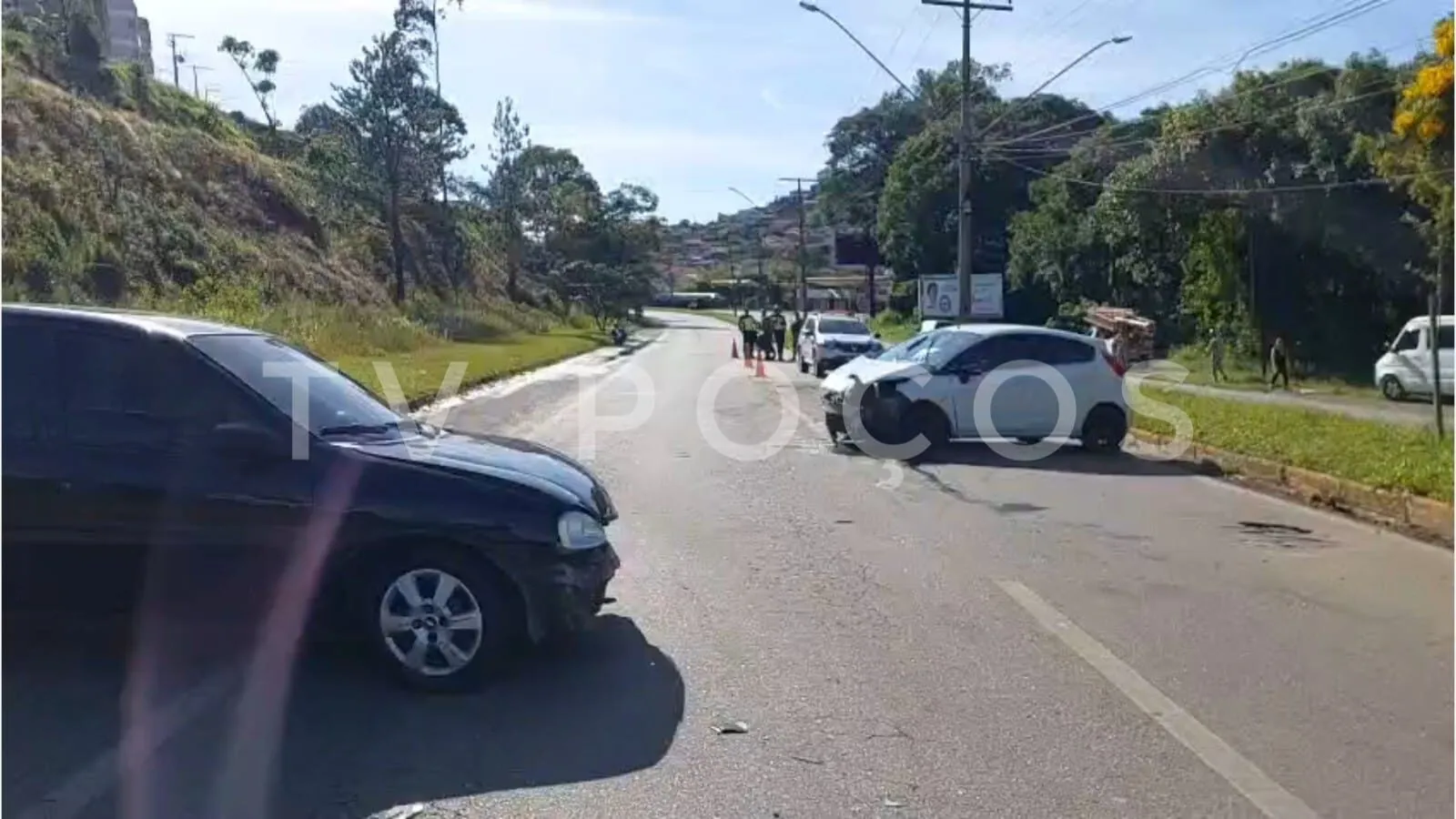 De acordo com informações obtidas pela equipe da TV Poços junto à Polícia Militar, o condutor do veículo envolvido afirmou ter perdido o controle da direção. Para evitar uma colisão com uma motocicleta que trafegava à sua frente em baixa velocidade, ele acabou atingindo um poste, que ficou danificado. Na sequência, um segundo carro colidiu em sua traseira.