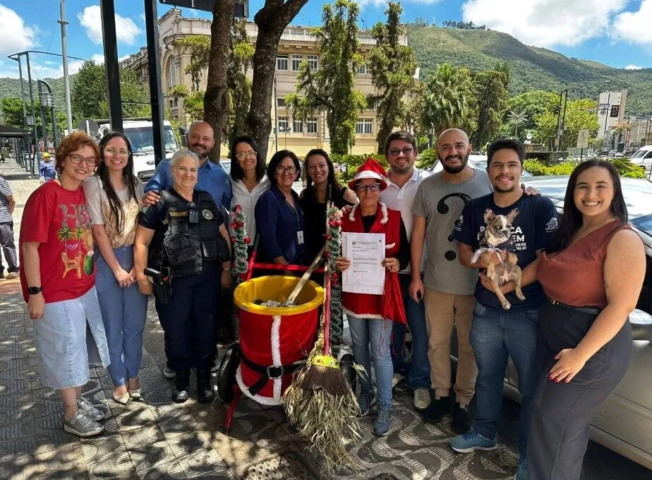 Nilsângela, a ‘Mamãe Noel da Limpeza’, é homenageada por levar alegria e espírito natalino às ruas de Poços de Caldas