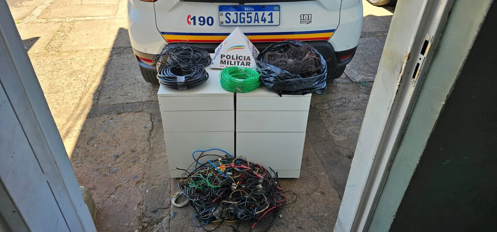 Uma das vítimas de furto de fiação reconheceu parte do material apreendido como sendo de sua propriedade, conforme registro de ocorrência.