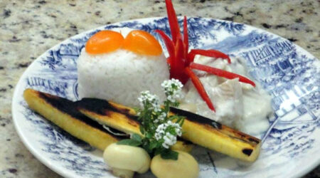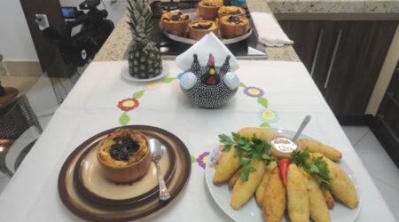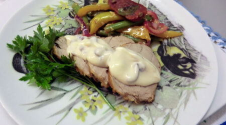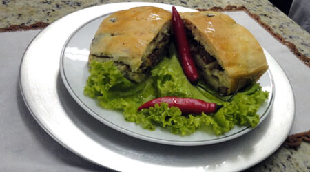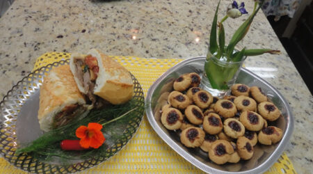 Pão com tomate, pimentão e bacon & Panqueca Romeu e Julieta
