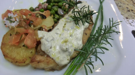 Pão sírio com calabresa fresca & Assado de Pêssego com granola