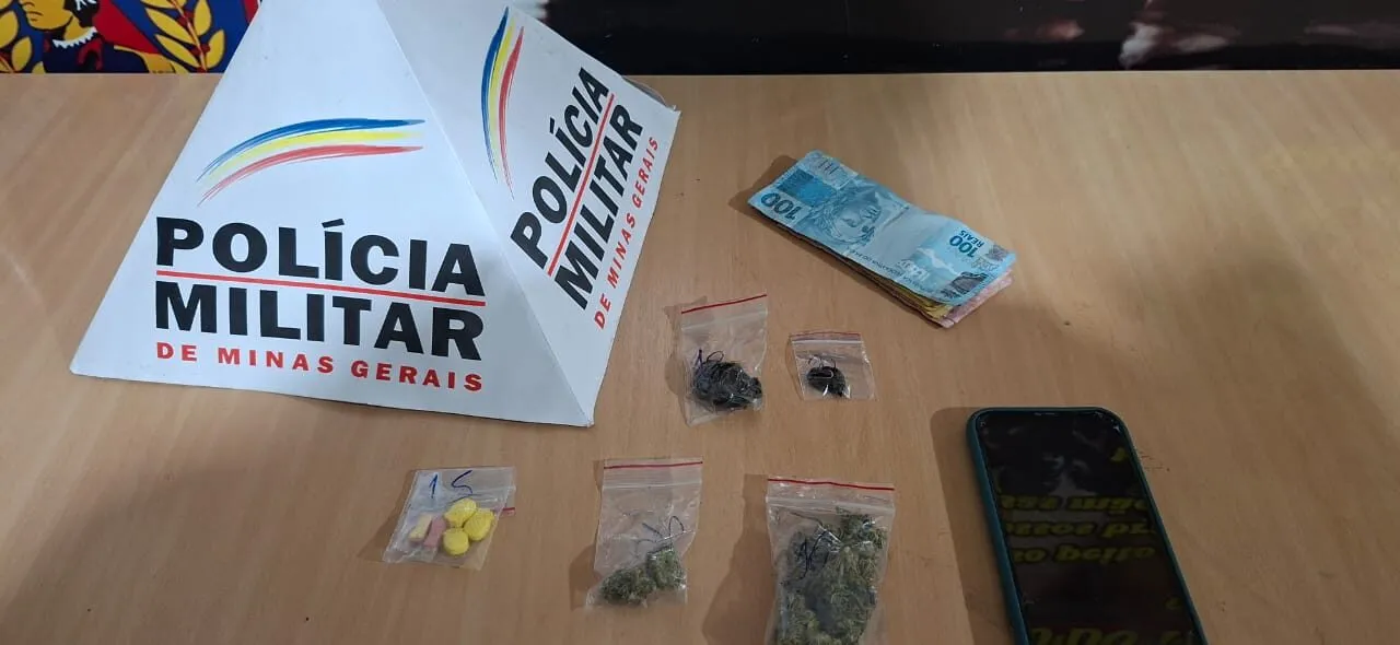 Durante a abordagem, os policiais encontraram com o autor R$ 259 em dinheiro, 5 comprimidos de ecstasy, 2 porções de haxixe e 5 buchas de maconha, todos prontos para comercialização. A motocicleta utilizada na fuga também foi apreendida.