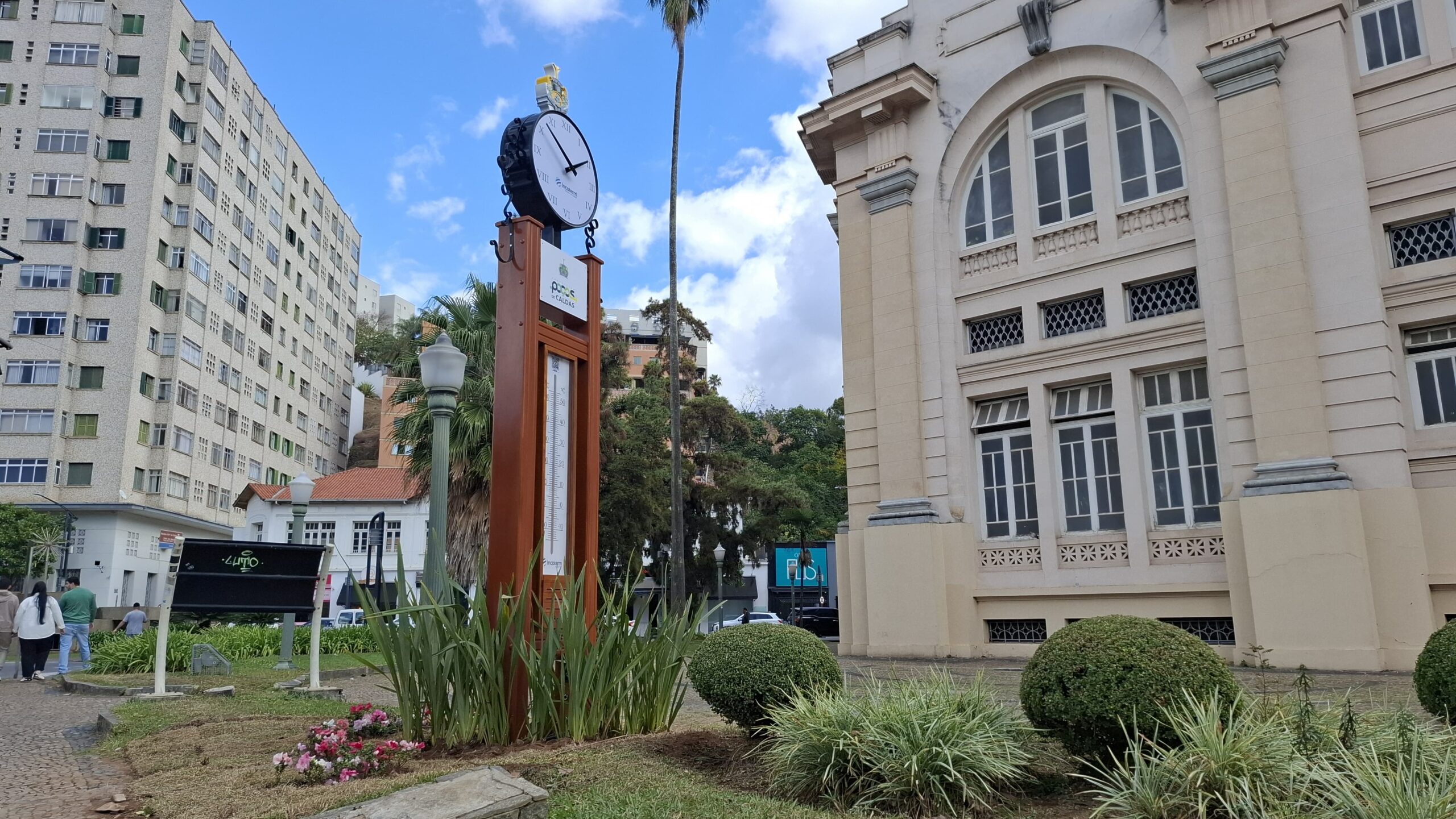 Poços de Caldas ganha novo termômetro com relógio ao lado das Thermas Antônio Carlos