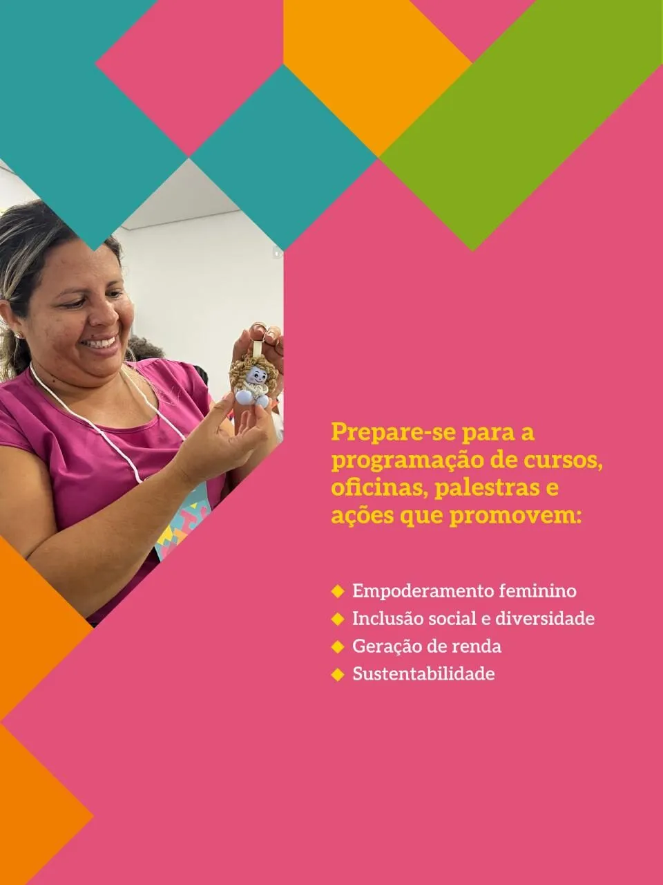 O Analista de Ação Social, Allan Reginaldo Batista destaca que será “Uma jornada de transformação, aprendizado e conexão que está prestes a começar. Um espaço para novas ideias, práticas e encontros para fortalecer comunidades por meio de cursos, oficinas, palestras e ações que promovem: Empoderamento feminino, Inclusão social e diversidade, Geração de renda e Sustentabilidade”.