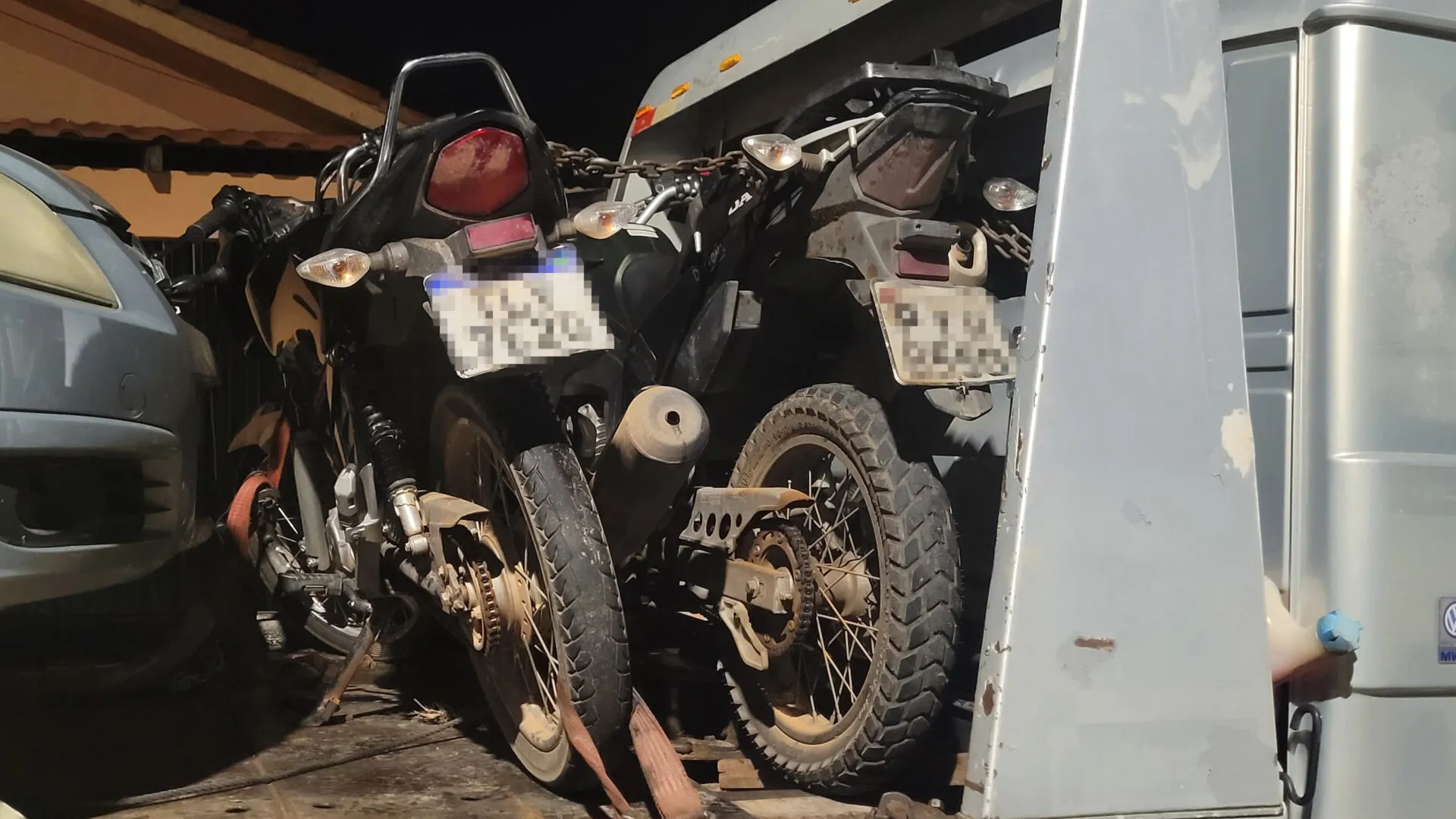 Com base nas informações, equipes policiais se deslocaram até o endereço do suspeito. No local, os militares localizaram as duas motocicletas escondidas no quintal da residência.