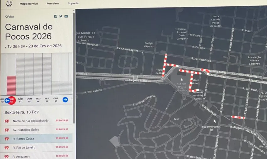 A Prefeitura de Poços de Caldas lançou uma ferramenta digital, em parceria com o aplicativo Waze, para informar motoristas sobre interdições e reservas de vagas no trânsito durante o Carnaval 2026. A plataforma passa a exibir um evento exclusivo da folia, reunindo bloqueios viários, horários e um mapa detalhado das áreas afetadas.