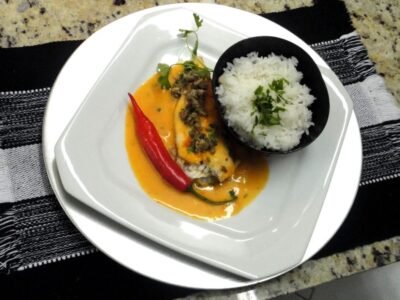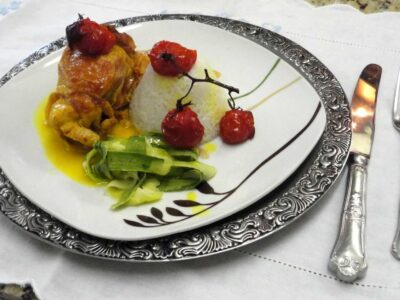 Coxa e Sobrecoxa recheada ao molho de açafrão