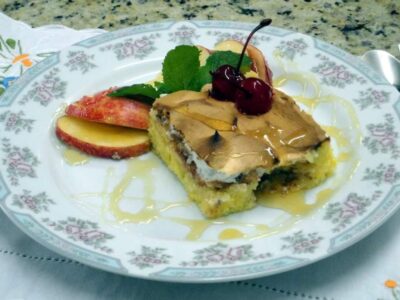 Bolo de maçã com suspiro e mel