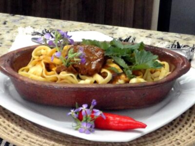Carne de panela com suco de laranja e mel