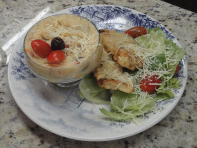 INGREDIENTES do purê 1 Kg. de batata cozida e amassada 1 pimentão vermelho grande ½ xícara de chá de azeitonas pretas sem caroços picadas 1 colher de sopa de manteiga 8 dentes de alho picados Leite fresco, azeite de oliva e sal a gosto PREPARO Em frigideira ou chapa defume o pimentão até a casca ficar completamente preta...