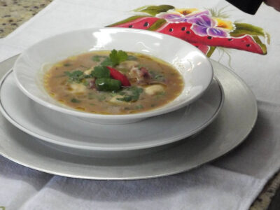 Caldo de feijão com nhoque de bacon