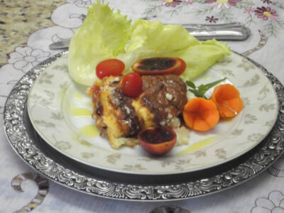 Torta de batata com bacalhau e pinhão