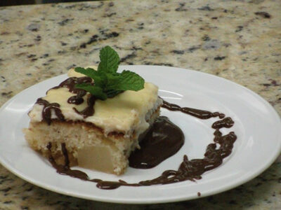 INGREDIENTES da massa 1 xícara de chá de açúcar refinado 1 xícara de chá de farinha de trigo 2 ovos 2 colheres de sopa de óleo de soja ¼ de xícara de chá de leite 1 colher rasa de sopa de fermento em pó INGREDIENTES para as peras 1 ½ xícara de chá de açúcar refinado 2 colheres de...