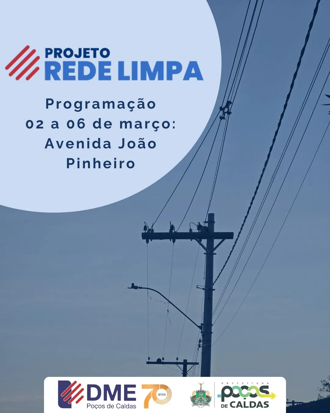 Entre os dias 2 e 6 de março de 2026, a Avenida João Pinheiro será palco das ações do Projeto Rede Limpa. A iniciativa prevê a realização de serviços de limpeza e reorganização das redes de telecomunicações instaladas ao longo da via.
