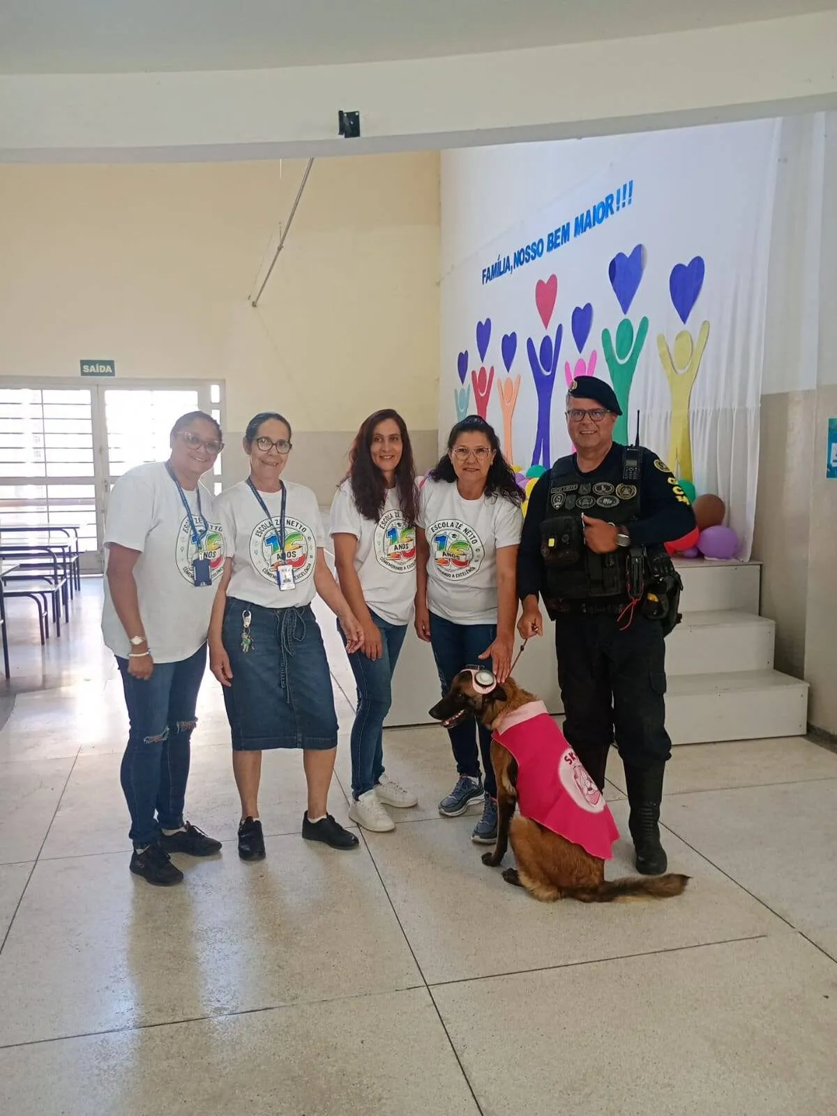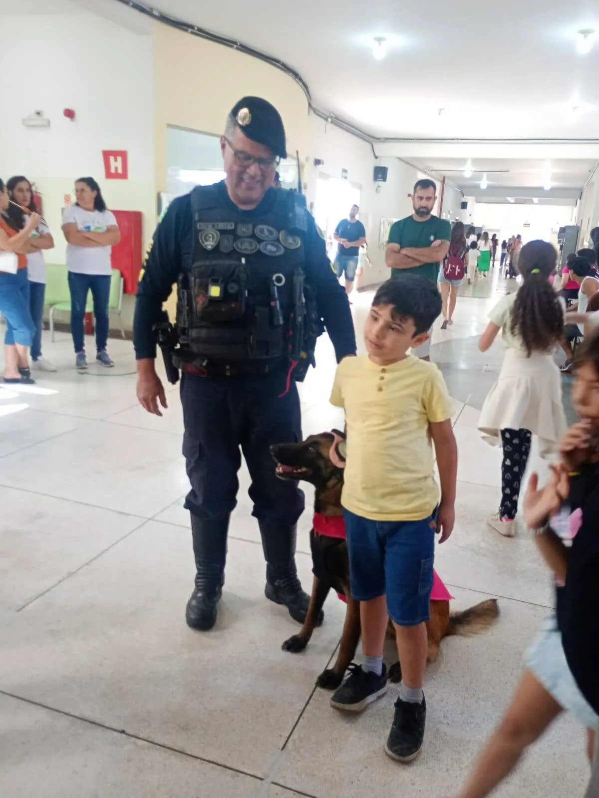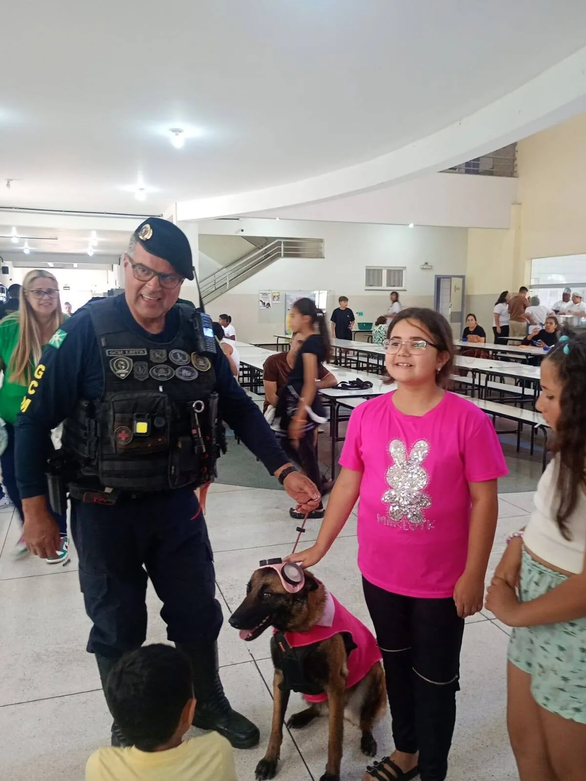 Para tornar a atividade ainda mais interativa, o Grupamento de Operações com Cães participou da ação com a cadela K9 Luna, que foi o grande destaque entre os estudantes.