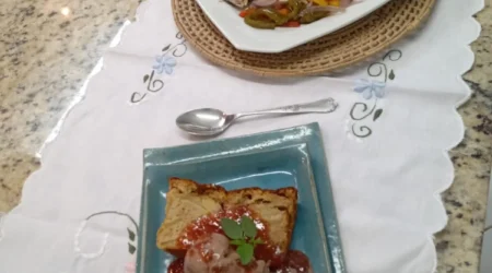 Sanduíche de almondega com molho de rabanete & Bolo de limão com morango