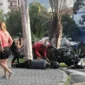 Ferva uma panela com água retire do fogo e escalde os pimentões por três minutos, escorra e deixe esfriar. Repita a operação com as duas cebolas. Misture os pimentões, as cebolas, o tomate, tudo frio, com os temperos picados, o azeite ou óleo e corrija o sal.