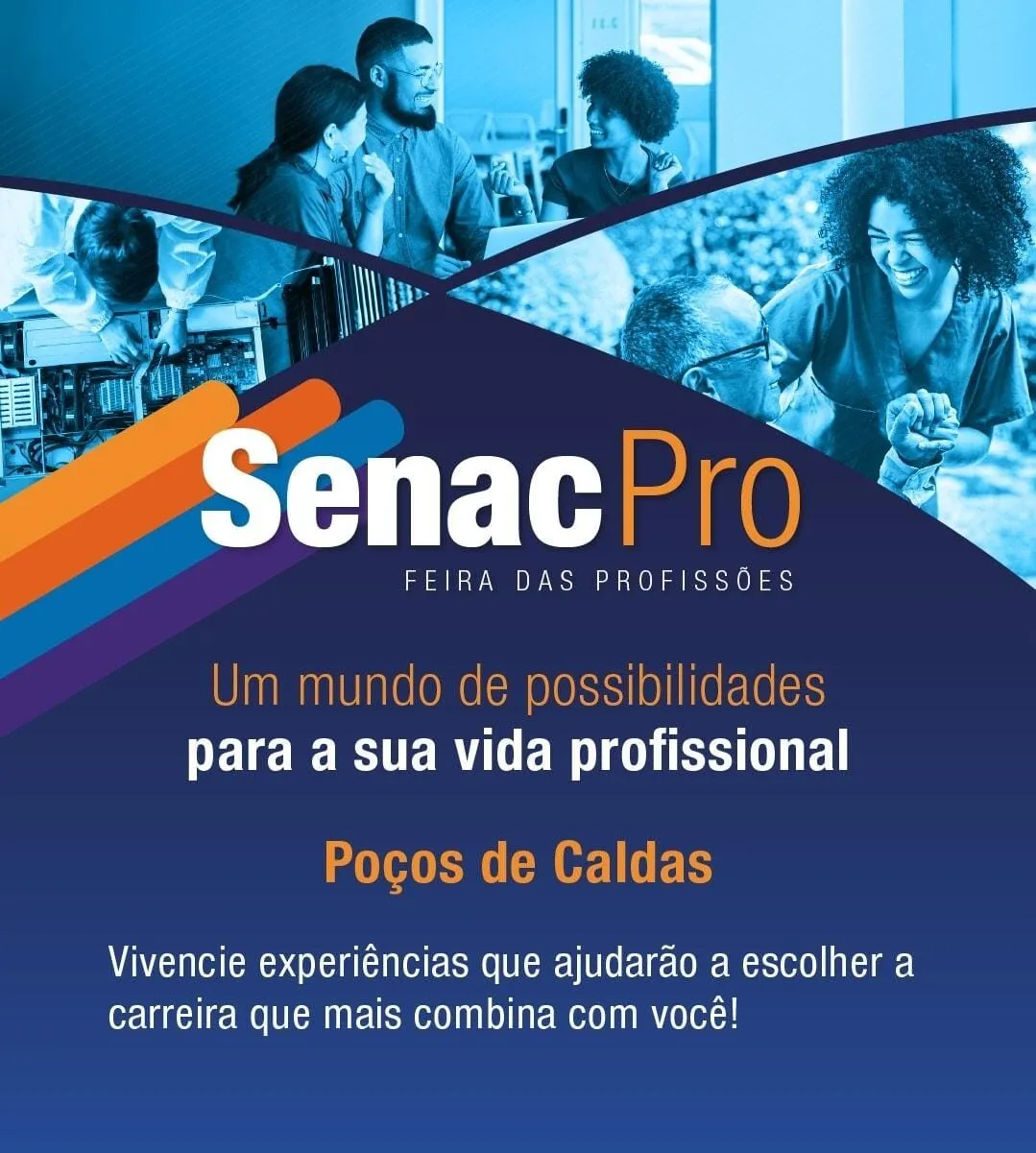 No dia 12 de novembro, o Senac em Poços de Caldas, integrante do Sistema Fecomércio MG, realiza a 1ª edição do Senac Pró, uma feira de profissões voltada a estudantes e pessoas que buscam qualificação para ingressar ou se recolocar no mercado de trabalho. O evento será gratuito e aberto ao público, das 8h às 12h e das 13h às 17h, na unidade localizada na rua Cerro Azul, 525, Jardim dos Estados.