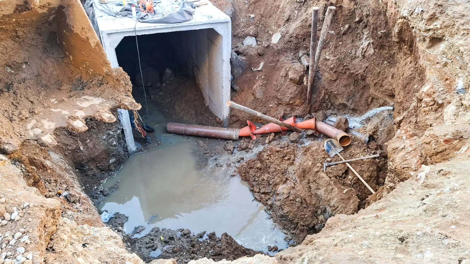 Tubulação de esgoto rompe e obra é interrompida